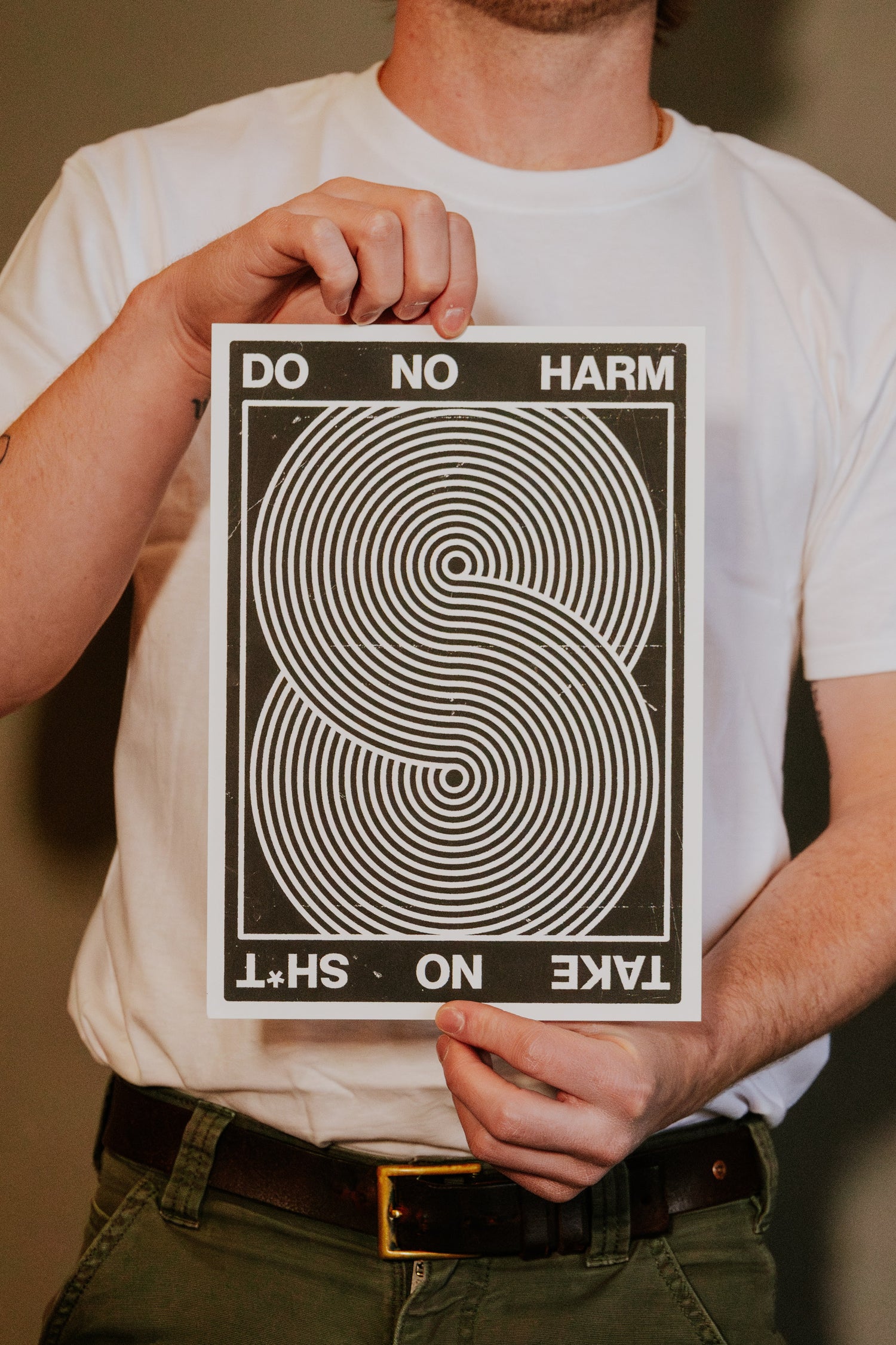 My design style is characterized by contrasting, often simple color schemes, juxtaposed positive and negative space, aggressive use of texture and ‘darker’ aesthetics. I am heavily influenced by punk/grunge flyers + DIY zines, relief printing + screen printing, Early Modern design, Nu-Brutalism, and the Avant Garde.